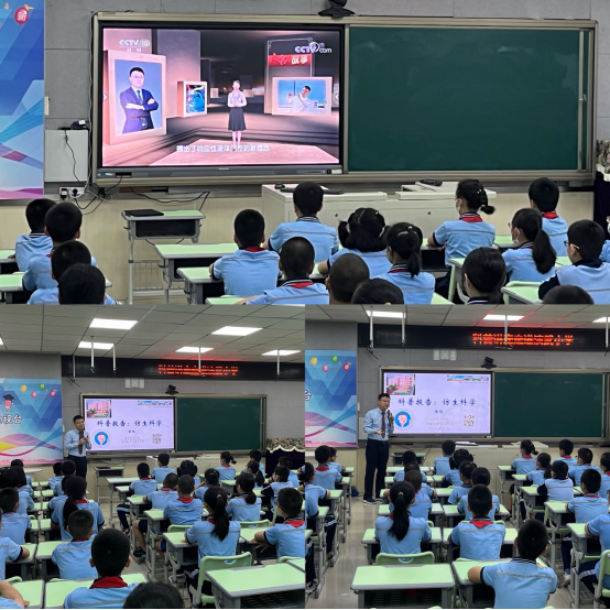 通过观看央视《人物故事》对侯旭教授的采访,大家对他的学习经历、研究方向有了进一步的了解。侯旭教授以仿生科学“向大自然学习”为题鼓励孩子们从生活和自然中学习。“荷叶”的出淤泥而不染,“水黾”的水上自由行走、“蜘蛛丝”的力学强度、“壁虎脚”的飞檐走壁、“鲨鱼皮”的抗阻、“北极熊毛发”的保暖功能等有趣的自然现象引起了学生们对学习科学的强大兴趣和热情。教授应用图片和视频的形式,深入浅出地带领孩子们在仿生科学的世界里感受的科学的魅力。教授通过展示这些神奇的自然现象,鼓励大家通过多多学习科学知识,更好地了解世界、了解科学的奥秘。而后,侯旭教授又提到了计算机和人工智能技术的飞速发展,从世界上第一台计算机的占地、重量和运算次数普通到如今智能芯片的质量、体积小却能每秒钟达到数十亿次的计算的对比,使同学们深深感叹科技发展带来的深远影响和庞大的力量。在一个小时的讲座中,同学们始终聚精会神、热情互动,这场科普报告也让同学们对仿生科学有了更深刻的认识。