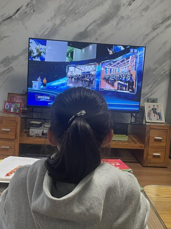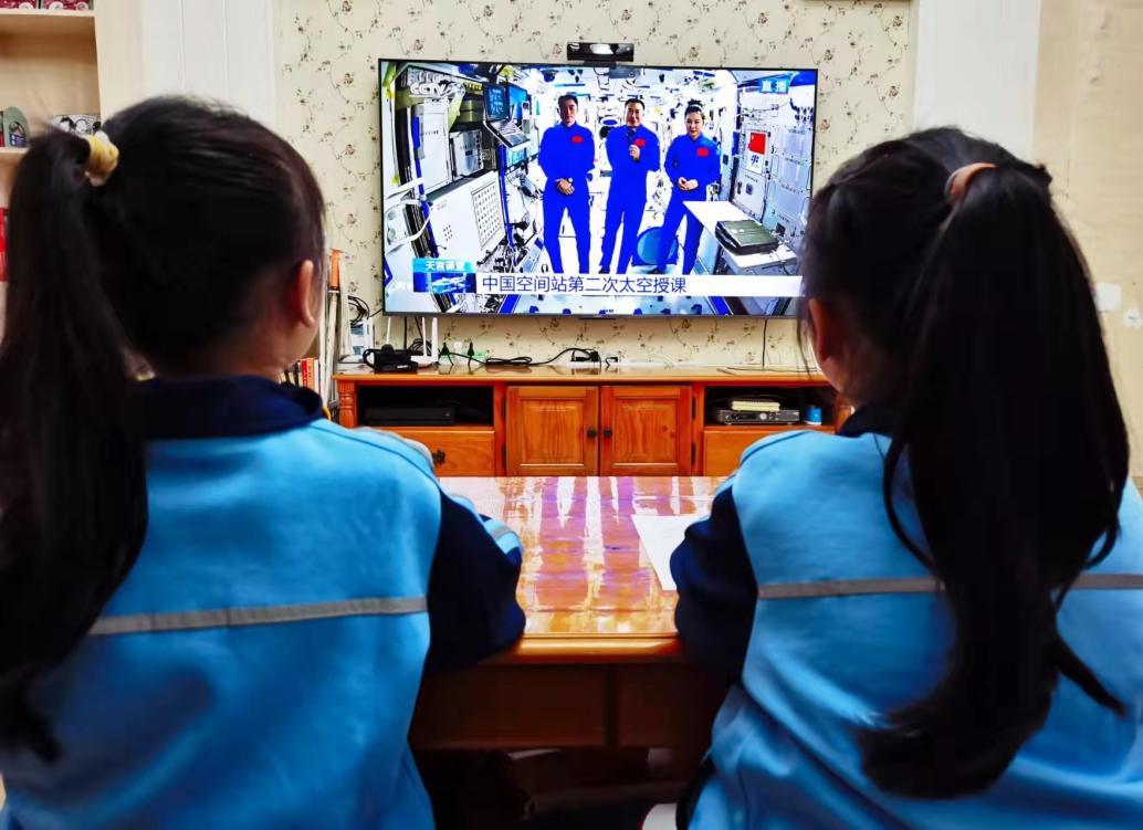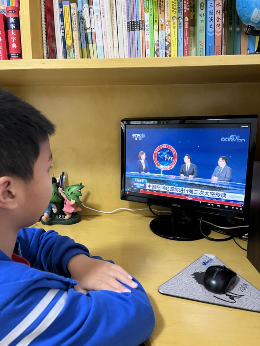 时隔四个月,等来“天宫课堂”第二课,全体师生满怀期待做好充分准备。班主任老师利用班会课的时间先给全体学生推送了一个关于太空的科普视频,丰富了孩子们对太空对科学的探究兴趣。等到15:40分,各班老师组织学生同步收看直播课堂。本次太空授课继续采用天地对话、航天员在轨演示的方式进行,通过太空“冰雪”实验、液桥演示实验、水油分离实验、太空抛物实验,介绍与展示空间科学设施,传播普及空间科学知识。孩子们聚精会神地听着,一颗颗梦想的种子正在在心里生根发芽。