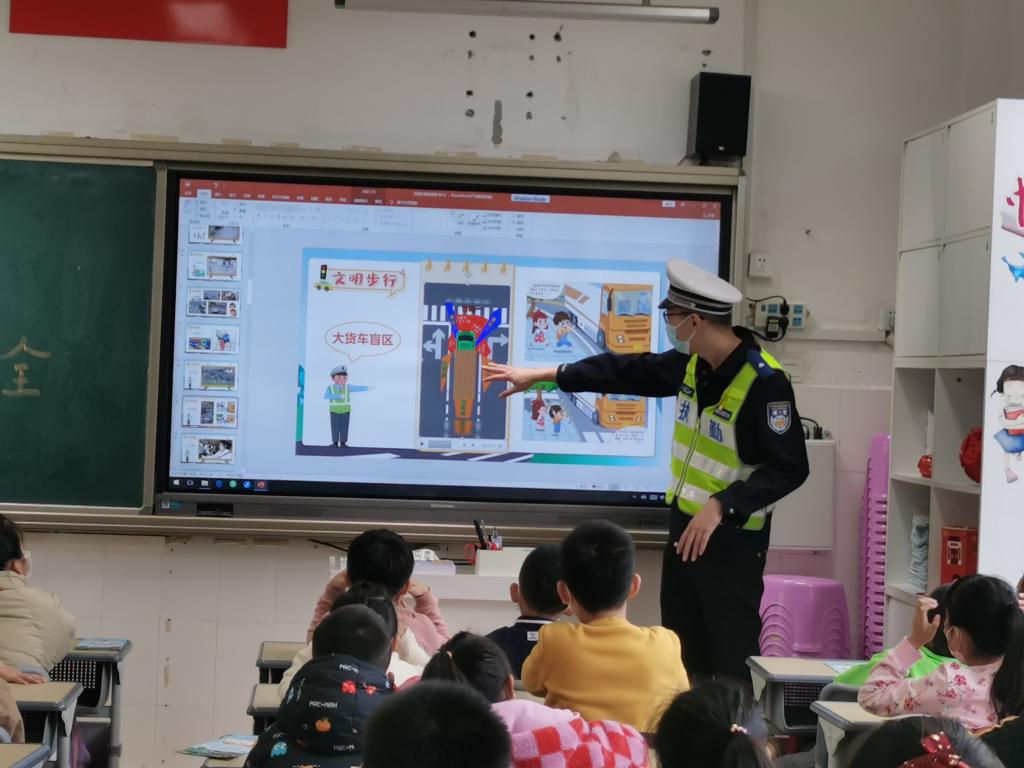 邀请嘉莲交警中队民警黄坤锋、辅警徐周兴走进课堂,进行“开学第一课-交通安全教育”,并与学校一起开展校园周边交通安全隐患排查