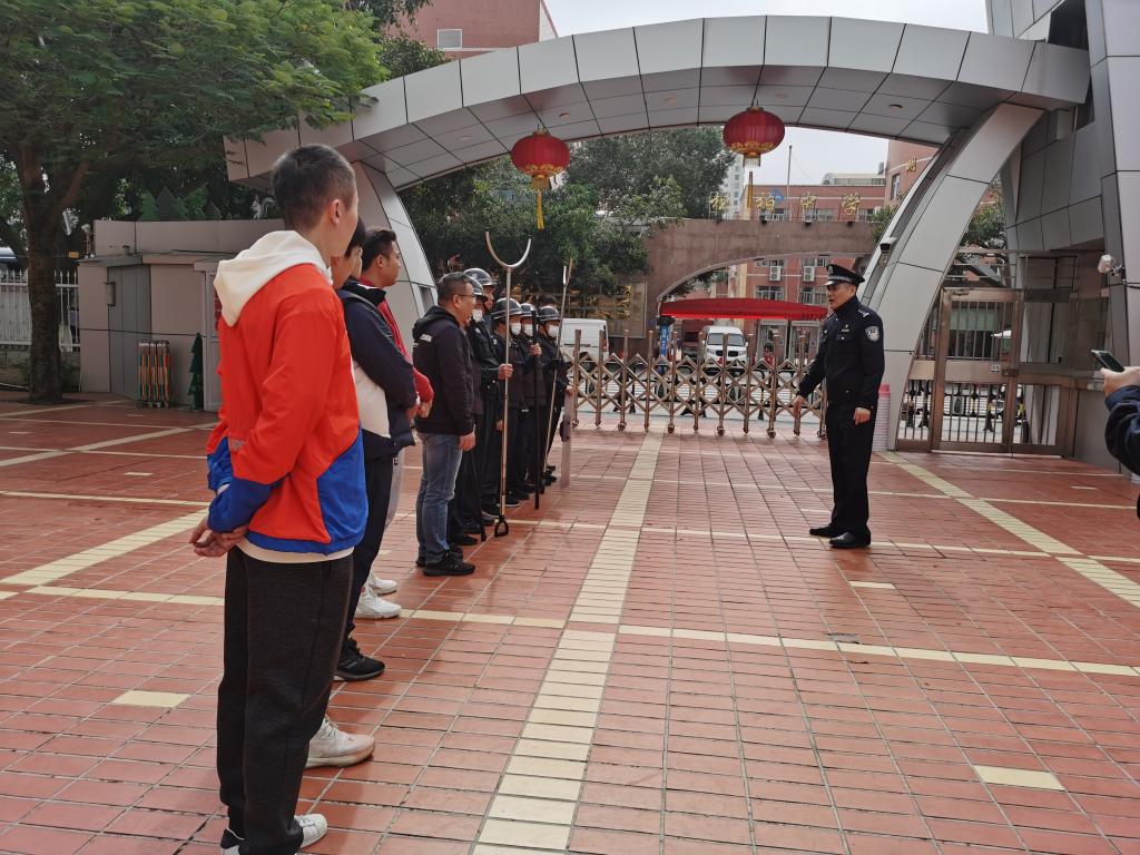 综治副校长、筼筜派出所社区指导员杨晓岗警官,指导开展反恐技能培训演练