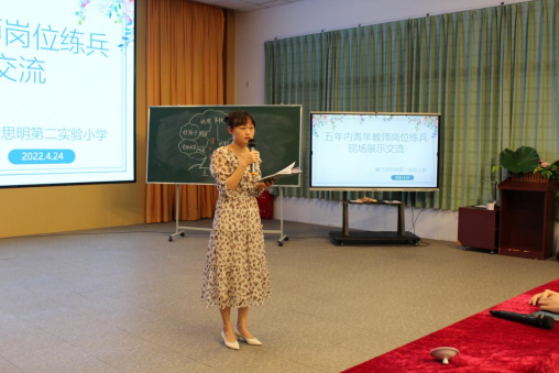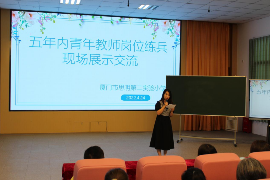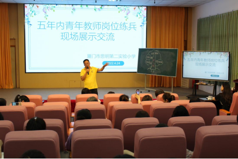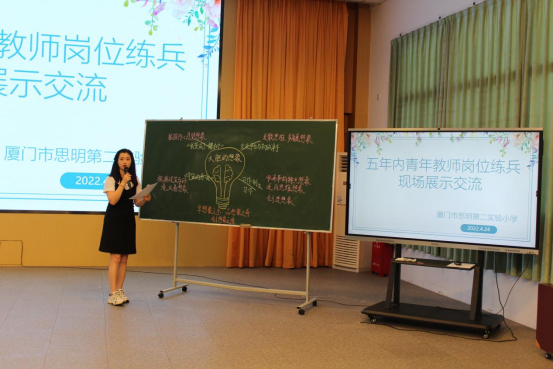 为促进青年教师专业成长,检验青年教师对新五项基本功自培自练的水平,厦门市思明第二实验小学于4月24日进行了青年教师基本功现场展示活动,分别展示了现场板书和阐述、课程解读、教学设计分析,并进行了师徒对话。
