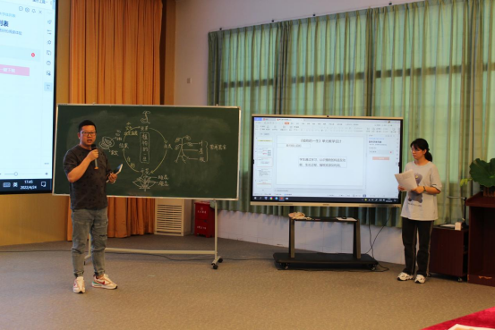 体育学科的韦政权老师,作为一名见习期的新老师,韦老师毫不怯场,清晰明了的阐述了自己的单元设计任务以及意图。