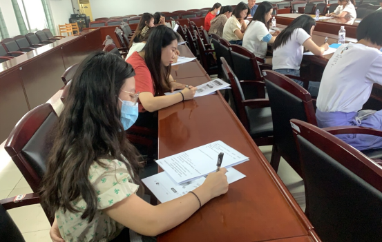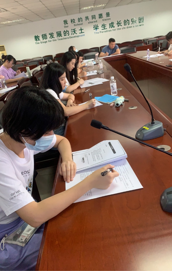 测试内容立足教学实际,围绕新课标、新理念,涵盖了填空、简答、论述等多种题型,既考察了教师的理论素养,又检验了教师在实际教学中运用新课标知识的能力。教科室主任邢艳萍老师亲自到场组织竞赛,严格巡查考场纪律。