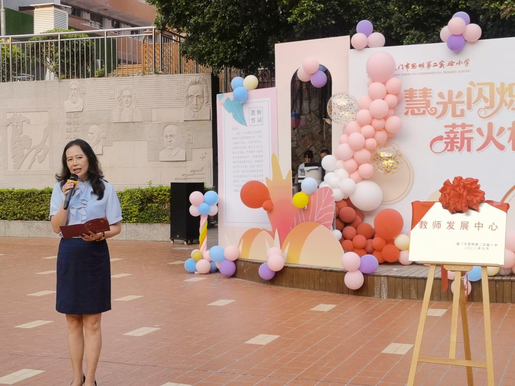 陈昆榕校长在致辞中期待各位教师能成为灯塔,成为耀眼的星星,引领孩子前行,提升自我,共同将我校特色校园文化打造成最闪亮的名片。