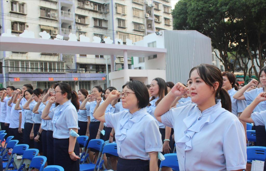教育是一场幸福的遇见,是一场爱与被爱的修行。我校教师向着国旗宣誓,鞭策自己不忘初心,砥砺前行。愿我们做有温度的老师,做有情怀的老师,做“四有”好老师,愿我们的孩子们眼底都有万丈光芒和星辰大海。