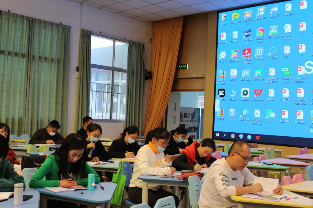 最后,工作室主持人陈宏老师对本次活动进行了点评和总结,他用“三个体现”对李老师这节课进行了点评,体现精心加工,合理处理教材,体现创新意识,体现了学生立场。同时也对林毅萍老师用心的讲座分享给予了高度评价。他对工作室和我校教师寄予厚望,希望大家多积累实践经验,为论文写作课题研究奠定基础。