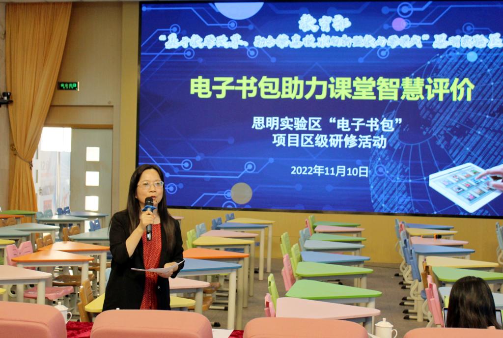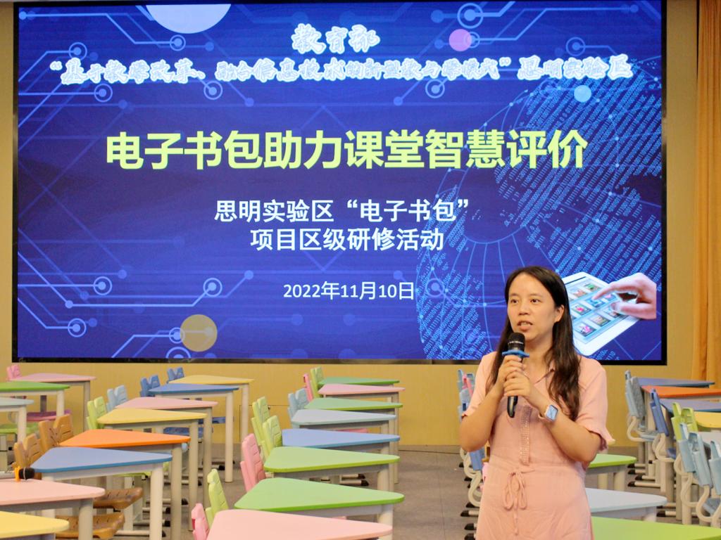 2022年11月10日,思明试验区“电子书包”项目区级研修活动在我校举行。思明区教师进修学校教育信息中心副主任郑雅芬老师、松柏第二小学教务处副主任陈司令老师、电子书包项目校教师,及我校领导、教师们参与了本次研讨活动。