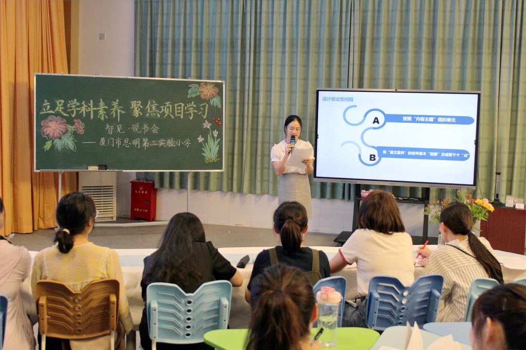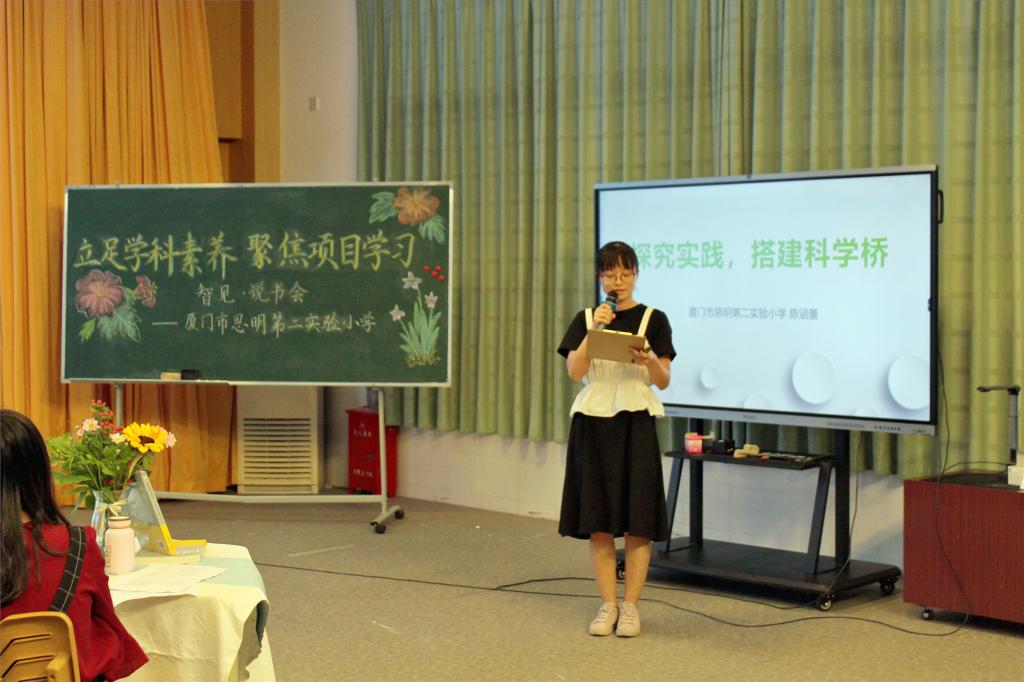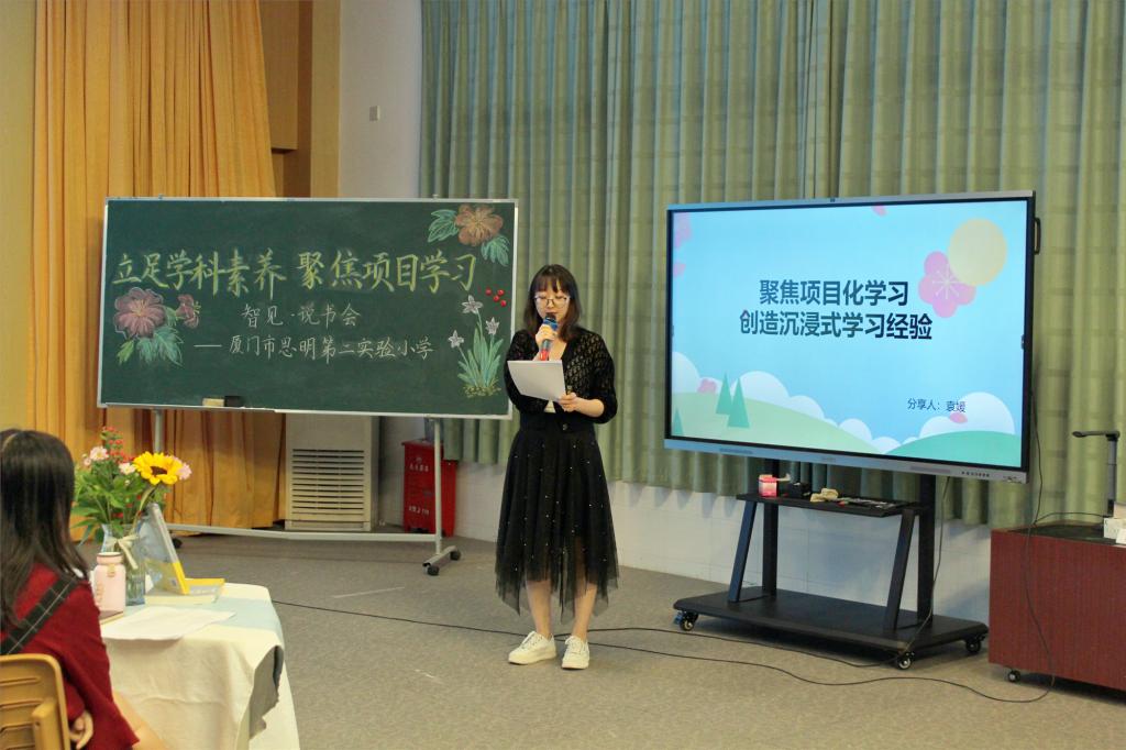 本次说书会分享的书籍是夏雪梅教授的《项目化学习设计:学习素养视角下的国际与本土实践》一书,分别由语文组郑燕燕老师、音乐组袁媛老师、数学组刘淳老师和科学组陈涵蕾老师四位说书人进行分享。四位老师从自身的学科出发,结合阅读书目,从不同角度畅谈了自己读书的所思所想,所感所悟。