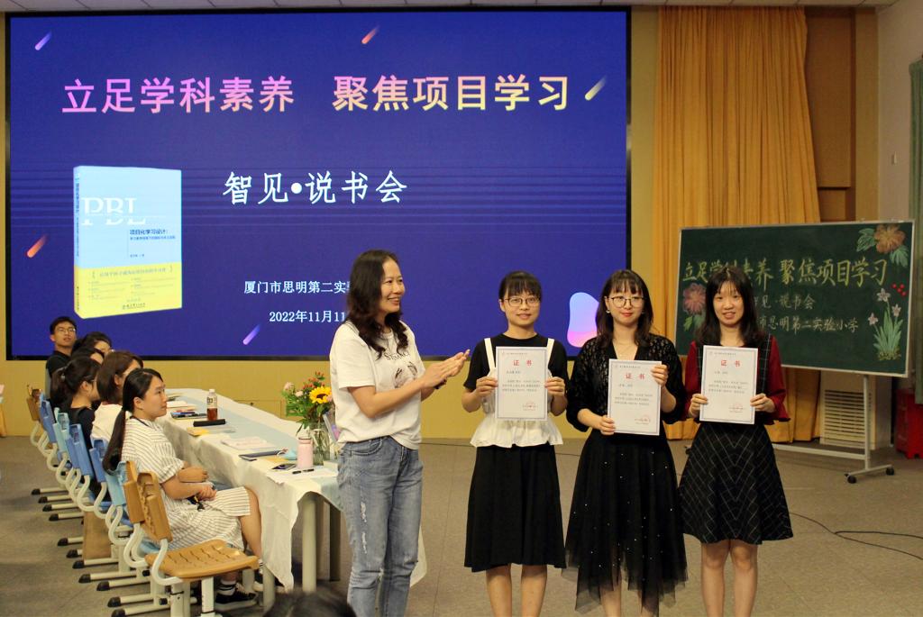 书香浓浓,意蕴无限。活动结束后,陈夏兰副校长进行了总结发言。她对四位“说书人”的表现做出了充分的肯定,同时也激励青年教师们以此次活动为契机,在今后的教育工作中经常读书,学以致用,努力提高整体素质和教育教学能力。活动最后,陈昆榕校长为四位“说书人”颁发微讲座证书,勉励老师们多读书,读好书。
