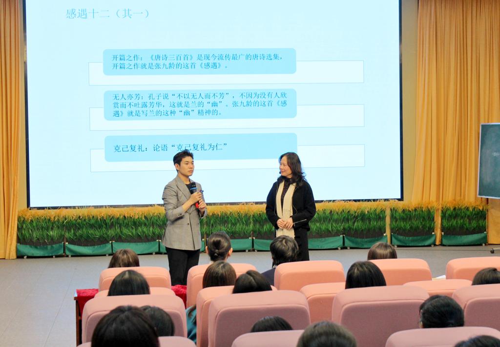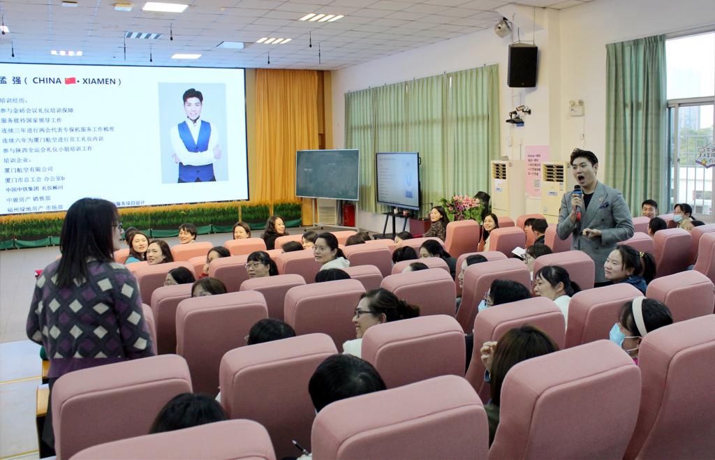 自古诗词最奇崛!温婉优雅,沉博绝丽,诗词带来不同的美感与意蕴。值此三八妇女节来临之际,我校于3月3日荣幸邀请中共厦门市委党校礼仪客座教授——孟强教授为我校全体教师讲授《诗词中的礼仪》,带领大家进入一场审美盛宴。