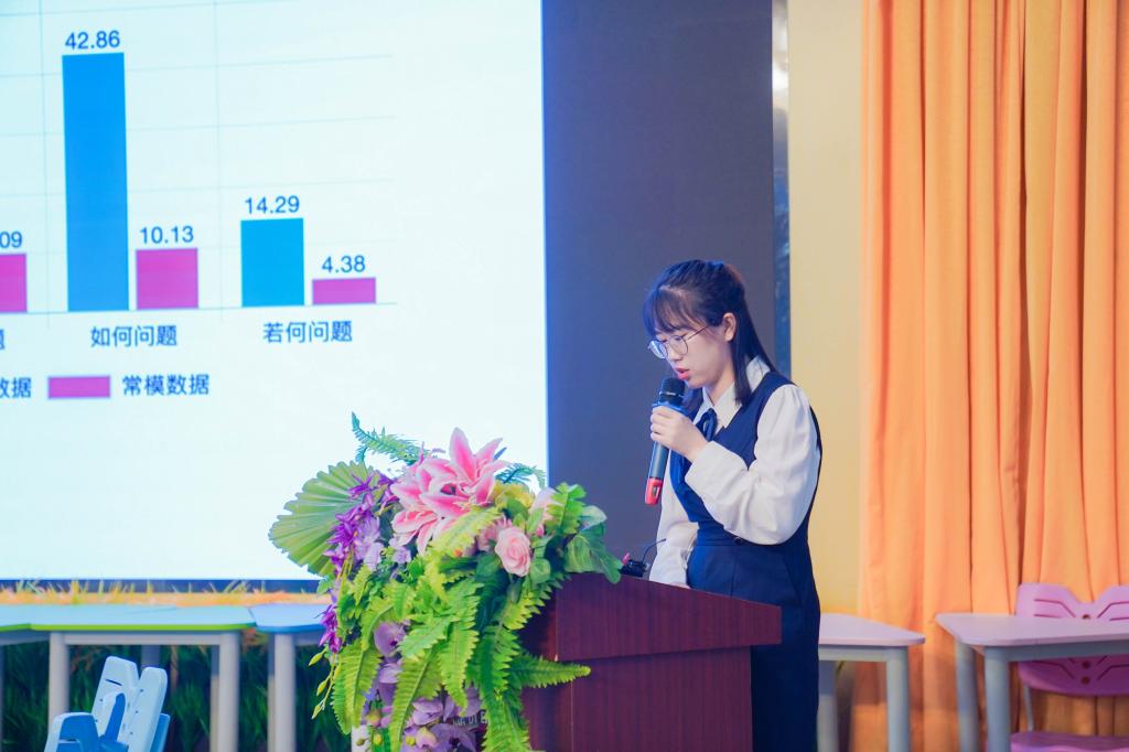 由谢诗雨、王毅超、方奕瑜、陈淑华、康敏五位老师分别代表不同观察小组上台进行汇报,并由陈司令老师和梁翔老师进行综合汇报。结合采集的五组客观数据,分别对两节课进行数据分析,针对课堂教学优势和不足,提出基于数据分析的课堂教学改进意见。