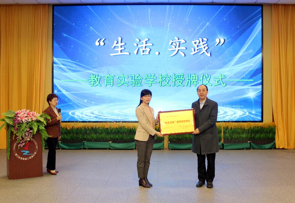 在与会教师的热切期盼中,授牌仪式正式开始。中陶会生活·实践教育专委会福建中心常务郭少榕副主任作为本次会议主持人,揭开隆重仪式的序幕。陶行知国际研究中心秘书长刘来兵宣读了中陶会“生活·实践”教育专委会的批复,周洪宇教授郑重授予思明第二实验小学、集美区侨英小学、同安区同城四季幼儿园、翔安区实验幼儿园“福建省‘生活·实践’教育实验学校”的牌匾。
