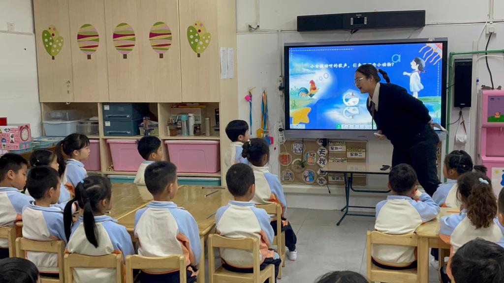 陈嬿伊老师借助视频创设了一个拼音王国历险记,通过闯关的形式认识拼音宝宝,调动孩子的兴趣,学生在一个个游戏和情境中始终保持浓厚的兴趣和高涨的学习热情,在探索与发现中愉快地认读。陈老师还指导学生正确的坐姿和正确的写字姿势,让学生对如何规范写字有了初步的了解。