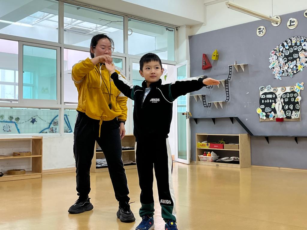 蔡玉萍老师以队列练习、广播操学习让孩子当一节“小学生”,体验小学体育课上课方式及课堂常规要求,让孩子感受小学体育课规范的站姿;体能练习和游戏提高孩子的课堂参与积极性,让他们感受到体育带来的乐趣。