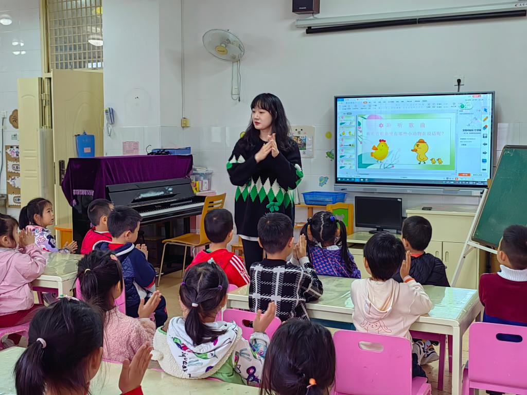 本着“趣味唱游”的学习任务。孟杨悦老师带领大四班的小朋友们去到了有趣的“动物园”。创设了良好的音乐课堂氛围,运用聆听、模仿、律动、编创等方式,引导学生在身心愉悦的课堂中获得丰富的情感体验,提高对音乐的表现和创造能力。