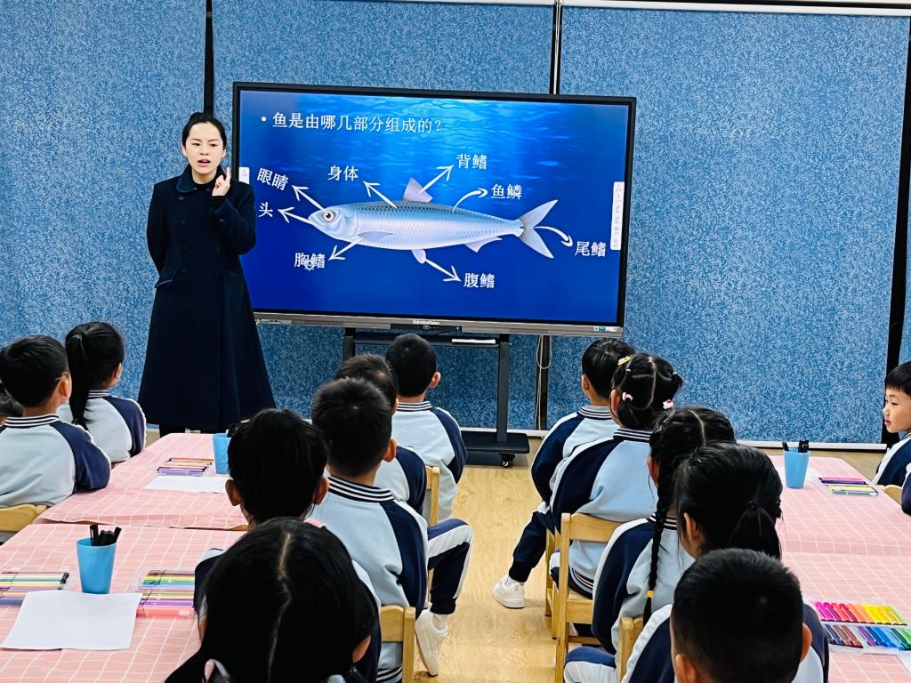 美术课上,张碧丰老师以趣味性的猜谜导入引入今天的课题《鱼儿游游》,激发了孩子们的积极性。张老师以多元化的形式引导小朋友们学习与认识鱼儿的种类、组成部分以及生活习性,为小朋友们接下来的绘画提供了思路,小朋友们在脑海中渐渐的形成了自己心目中的“鱼儿”形象,并能大胆的表现出来。整堂课思路清晰,环节紧凑,与孩子积极互动,培养学生的创造性思维。
