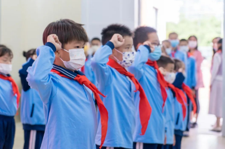 出旗仪式结束后,全体队员高唱《中国少年先锋队队歌》。“我们是共产主义接班人,继承革命先辈的光荣传统......”歌声激昂澎湃,队员们唱出了心中的自豪和勇往直前的决心!
