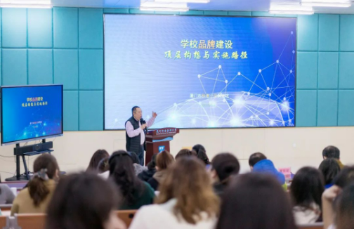 在会展南小学孙雯莉副校长的主持下,群惠小学黄坚定校长的专题讲座《学校品牌建设顶层构想与实施路径》缓缓拉开序幕。
