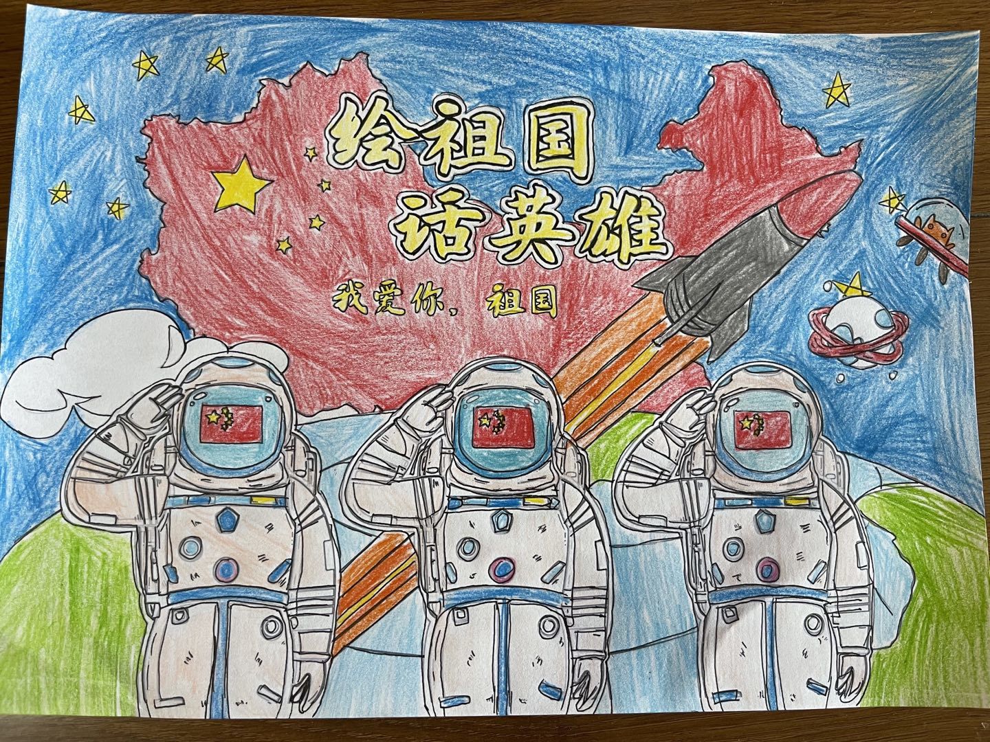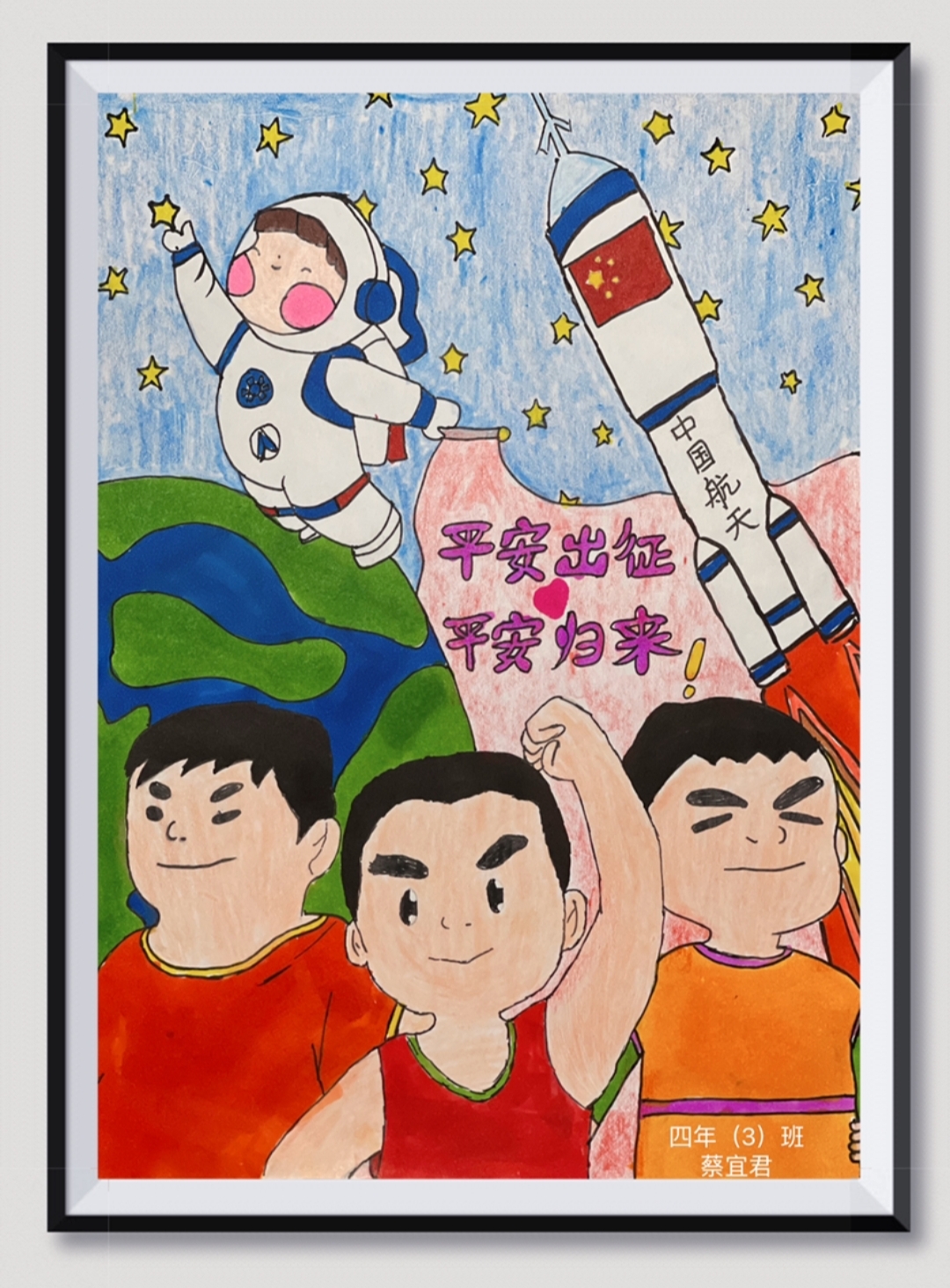 三年(3)班刘堃琳同学说:“航天员叔叔们,真伟大!”