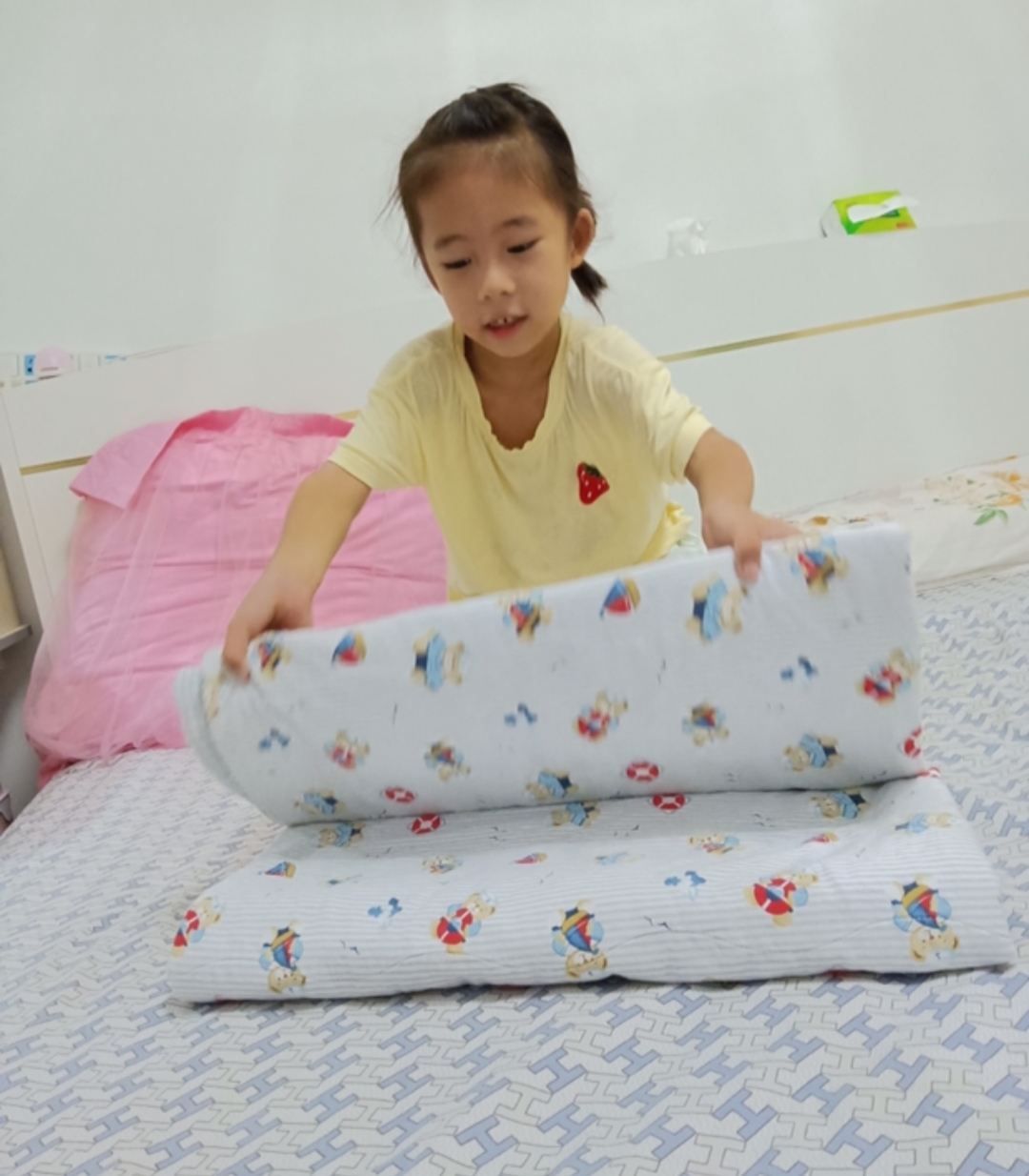 一、二年级学生开展洗袜子、叠衣服、叠被子、收拾整理自己的书包、书架;三、四年级学生开展收拾整理自己的书桌房间、清洗衣服;五、六年级学生开展对季节衣物进行分类整理、更换自己睡房的床单及被套。活动中同学们的自理能力得到锻炼。