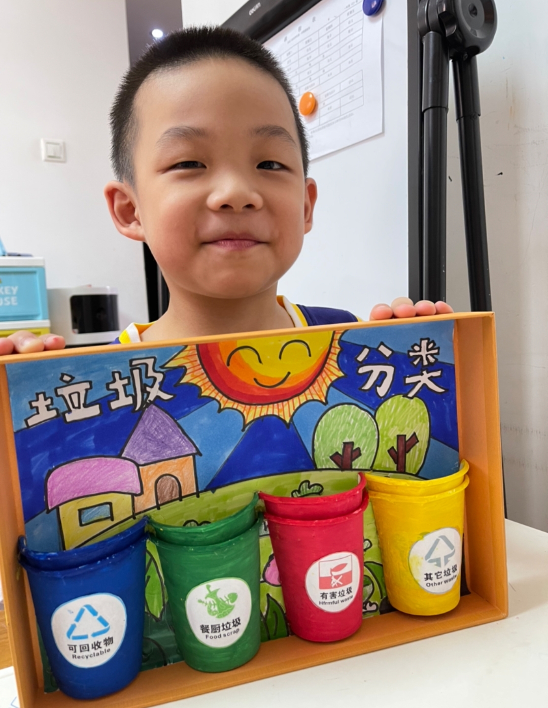 作为首批垃圾分类示范校,嘉滨小学积极开展“垃圾分类我能行”活动,引导学生正确分清厨余垃圾、有害垃圾、可回收垃圾、其他垃圾,了解各色垃圾桶的不同性质,学习垃圾分类的方法、和父母一起制作垃圾分类标识牌或垃圾分类桶。三、四年级还可以变废为宝 ,在家里利用废旧物,制作一件手工作品;五、六年级学生则要求分享生活小妙招,结合日常生活中的一些生活经验,寻找处理问题的方法,总结生活小妙招。