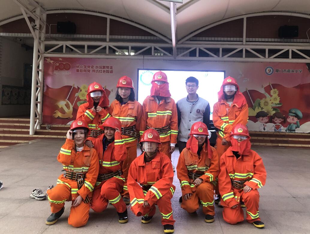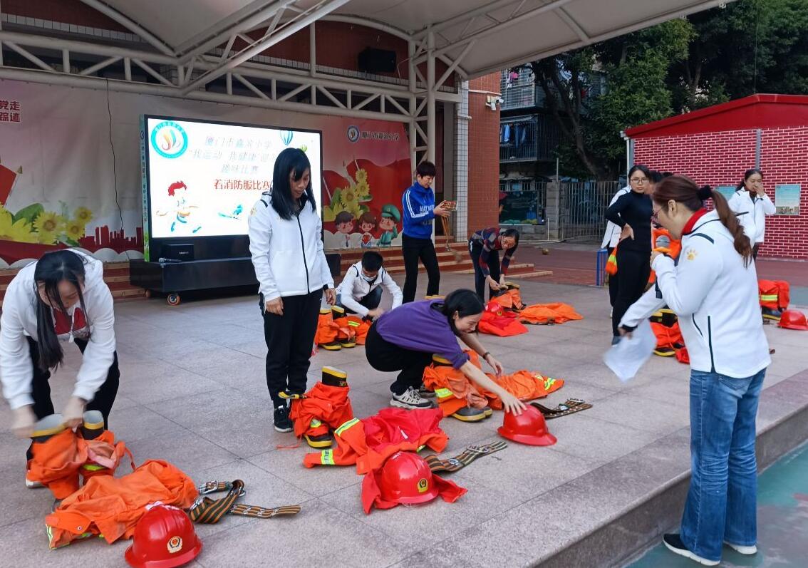 接下来,是这次运动会的重头戏——“我是消防员”,老师们来比一比穿消防服的速度。先由我校代表思明区教职工在“微型消防站技能比武”中取得团队第一名的胡小龙老师对消防服的穿法做了展示和讲解。我们的美女老师跃跃欲试进行了切磋。收获了快乐,锻炼了身体,更是体验了消防战士在救人之际应有的速度与不易。