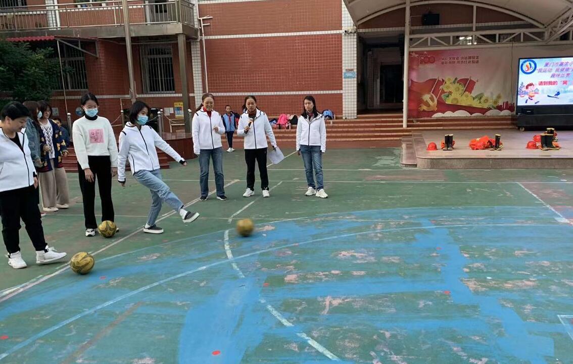 首先是“请到我网里来”。参赛选手分别将足球踢入栏中,看似简单的比赛,用脚掌内测发力是进球的关键。看谁说我们只会埋于书本,嘉滨老师的力量不容小觑。