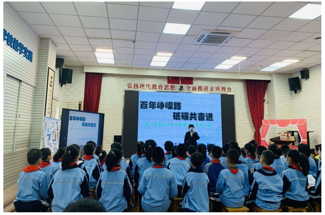百名少年齐聚五楼多媒体教室以“百年峥嵘路 砥砺共奋进”为主题,开展了一次汇报展示活动,回忆历史,畅想未来。不仅了解中国人民过去的屈辱历史, 而且在延安精神的激励下,严格要求自己,励志为圆梦中华而读书,做共产主义事业接班人。