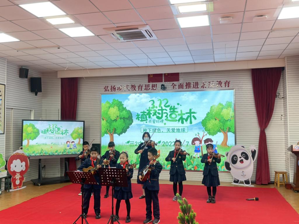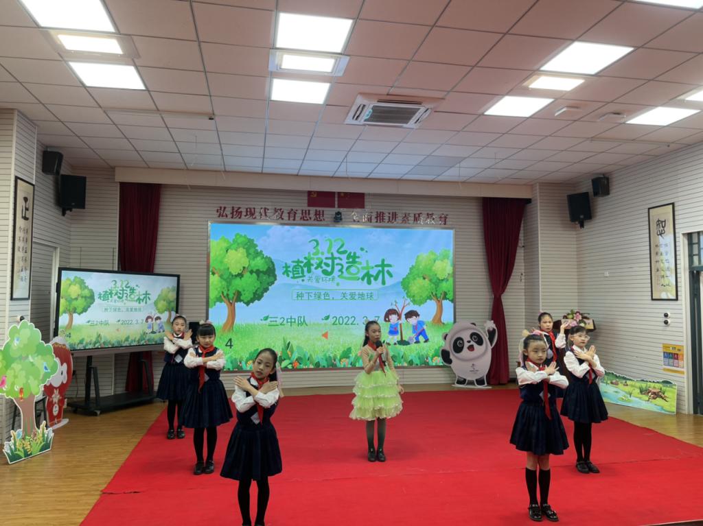 紧接着厦门市嘉滨小学三2中队将“绿色”进行到底,班级诵读《假如我是一棵小树》、手语操《植树歌》、歌舞表演《小小爱心树》、乐器合奏《我们多么幸福》,一个个精彩的节目将绿色环保贯穿始终,孩子们化身护绿小精灵,展示他们美好的希冀:共护一片绿色,是我们共同的心愿;共享一片蓝天,是我们共同的希望。学校主持人社团锦上添花,以配乐诗歌朗诵《春天,我们种下一棵树》、《有一种梦想叫种下希望》表达了他们的美好心愿。