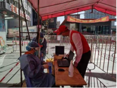 检测现场,检测过程顺畅高效、有条不紊,各项工作井然有序。教师们志愿者身着防护服,有的在排队等候检测的人群中维持秩序,引导群众前往监测点登记、取样,提醒检测群众全程佩戴口罩,保持1米安全线;有的承担数据录入……他们连续工作多个小时,始终坚守岗位,默默奉献,圆满完成任务。
