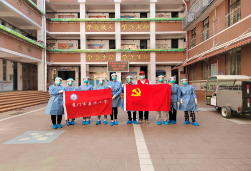 3月21日,根据市疫情防控指挥部统一部署,全市中小幼暂停线下教学一周,老师们马上响应,一边制作微课、设计活动,投入线上教学;另一边根据上级工作安排,作为志愿者到莲秀社区的龙江大厦、嘉莲花园、菡凌蓉小区等进行卡口值守。3月25日晚上,接到上级通知,3月26日下午要组织恢复线下教学前的全员核酸。陈振辉校长马上部署,纪圣锋副主任立即和社区负责人取得联系,于26日上午完成场地布置;德育处、办公室等也立即响应,做好通知、现场人员安排、核酸检测时段安排等等。4月3日,根据厦门市疫情防控指挥部统一部署,为阻断疫情传播,厦门市思明区在梧村街道、中华街道部分区域开展全员核酸,我校组织志愿者到莲坂外图、松柏公园支援。4月5日-6日,思明区、湖里区开展区域全员核酸,我校作为检测点,组织近80人次作为志愿者,为长青社区居民服务。
