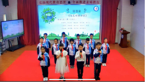 第一小队带来了诗歌朗诵《绿色环保诗歌》展现他们绿色环保的昂扬姿态。