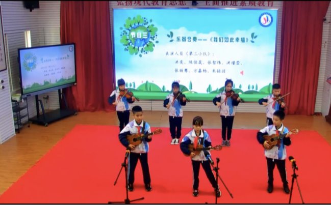 第三小队带来了乐器合奏《我们如此幸福》。我们与环境同呼吸,共命运,唯有保护环境,保护生态,我们才能如此幸福。