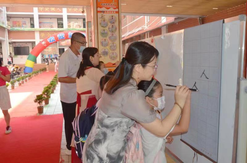 德育处黄老师和美术组的夏老师亲切地带领着同学们书写“人”字,开笔习礼学写“人”字意寓深远,期待他们能够成为顶天立地,堂堂正正的人。老师们牵起小朋友们的手带领他们走过启智门,从此他们开启智慧之门,以学为舟,在浩如烟海的书海里徜徉。管乐队作为学校王牌社团也为新同学们献上了一首首精彩曲目,嘉小丰富多彩的学习生活犹如美丽的画卷徐徐展开。