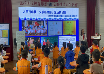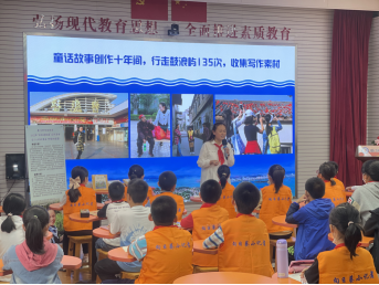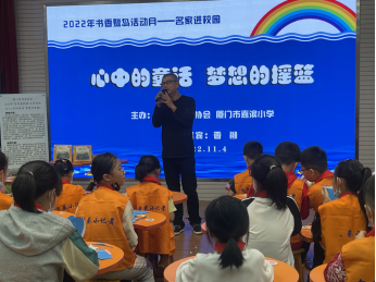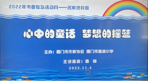 晚秋渐远初冬来,11月4日下午,厦门市嘉滨小学开展了“2022年书香鹭岛活动月名家进校园”专题活动。著名儿童文学作家香橼老师携《童话游鼓浪屿》系列图书,为我校大队委及小记者团成员做了一场精彩的报告,香橼老师亲切地跟同学们面对面交流,激发他们对童话创作的兴趣与热情,带领小记者们去童话的海洋“遨游”,与童话来了一场美丽的邂逅。