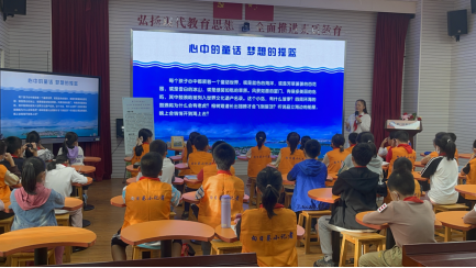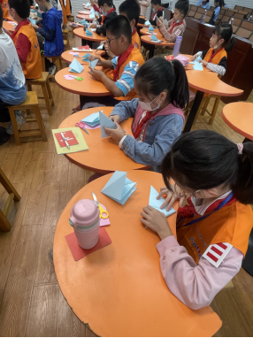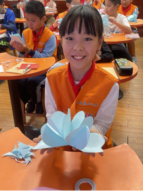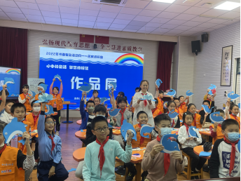 讲座结束,香橼老师拿出一本精心制作的白海豚手工书,打开是立体的海上浪花,她希望同学们将最美的童话故事写在里面。香橼老师一步一步指导现场的小记者们制作小海豚”手工书内页,其中浪花是由两张浅蓝色正方形的纸对折两次从中间分成,然后剪成爱心图案,接着用海蓝色硬卡纸制作海豚形状的封面和封底,同学们屏息凝神,专心投入地制作,一本本精美的手工书呈现在眼前。香橼老师鼓励现场的孩子们,说他们都是未来的作家,希望每个孩子心中都有作家梦,也预祝他们的作家梦早日实现。