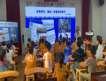 香橼老师用“大南瓜”“大香柠”两张照片介绍自己笔名“香橼”的由来,分享和我校毕业的学姐蔡维清同学通过师生合作接龙的形式进行童话故事创作的美好回忆,新颖有趣。2011年5月香橼老师和嘉滨小学的孩子们通过大量收集鼓浪屿上关于老虎的故事,创作接龙童话《虎巷》;2013年5月和四年1班同学手拉手,共圆童话梦,创作《透明怪兽来了》。