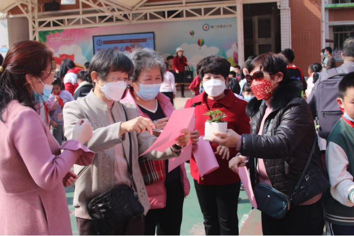 操场上,除了忙碌的同学、老师,还有热心参与活动的家长们。陈抒琦妈妈正在认真地为孩子们拍照,纪念这个美好的时刻。她表示,学雷锋献爱心这个活动很有意义,能被邀请来参与很荣幸。蔡晨晨妈妈激动地说:“这场活动可以帮助到贫困的人,同时是绝佳的品德教育。”