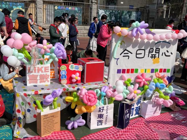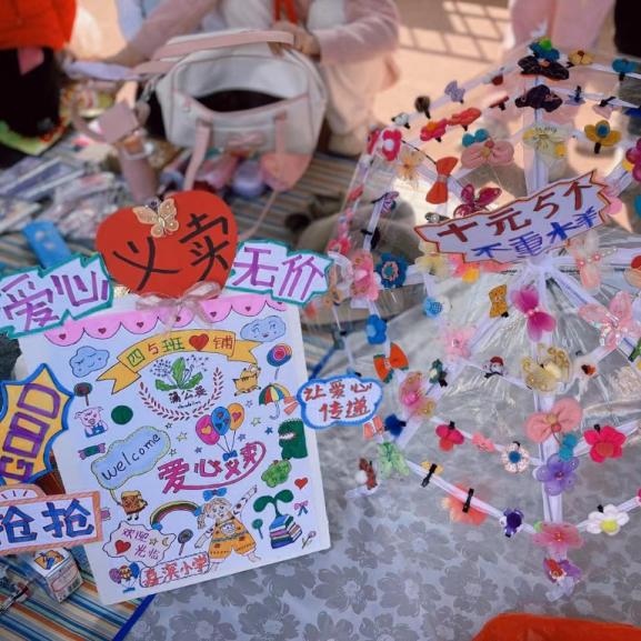本次活动以“劳动融爱心,义卖传温情”为主题,不少物品都是孩子们劳动所得,亲手制作,意义非凡。编织社团的手工作品销量绝佳。一条条斑斓的线交织成一件件精美的工艺品,巧手织我心。社员们在老师指导下,将学化成实物,努力成果得以展示挥写。