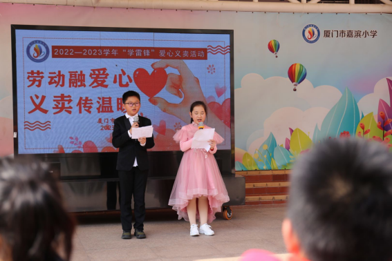 2023年是学雷锋活动60周年,为贯彻党的二十大精神,落实《中共中央关于全面加强新时代少先队工作的意见》,培养广大少先队员的服务意识、团队意识、劳动意识,厦门市嘉滨小学于2023年3月3日在大操场举行义卖活动。