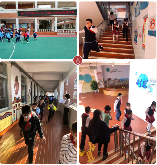 消防演练前期班主任老师对学生进行了消防安全教育,让孩子们了解如何预防火灾及发生火灾时,应当注意哪些事项,如何进行自救等等,同时强调消防安全的重要性,请孩子们认真对待安全消防疏散演练。你瞧,演练时老师和孩子们个个捂住口鼻,弯着身子快速地按疏散路线撤离,跑到安全地带集合,那认真严肃的样子,正用实际行动告诉大家:消防意识多一份学习,生命安全多十份保障!通过平时的安全演练、紧急疏散演习,孩子们学到了安全防护知识,达到遇事不慌、沉着应对、自我保护的效果。