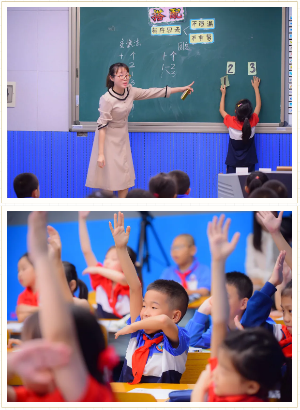 同安区祥平中心小学卢思婕老师执教的二年级上册《搭配》拉开了本次活动的序幕。卢老师以小猪佩奇冒险为主线,设计了“找密码”“分礼物”“拍照”等学习活动,学生在摆一摆、写一写、说一说的活动中不断积累和发展了观察、操作、归纳、类比等数学基本活动经验。
