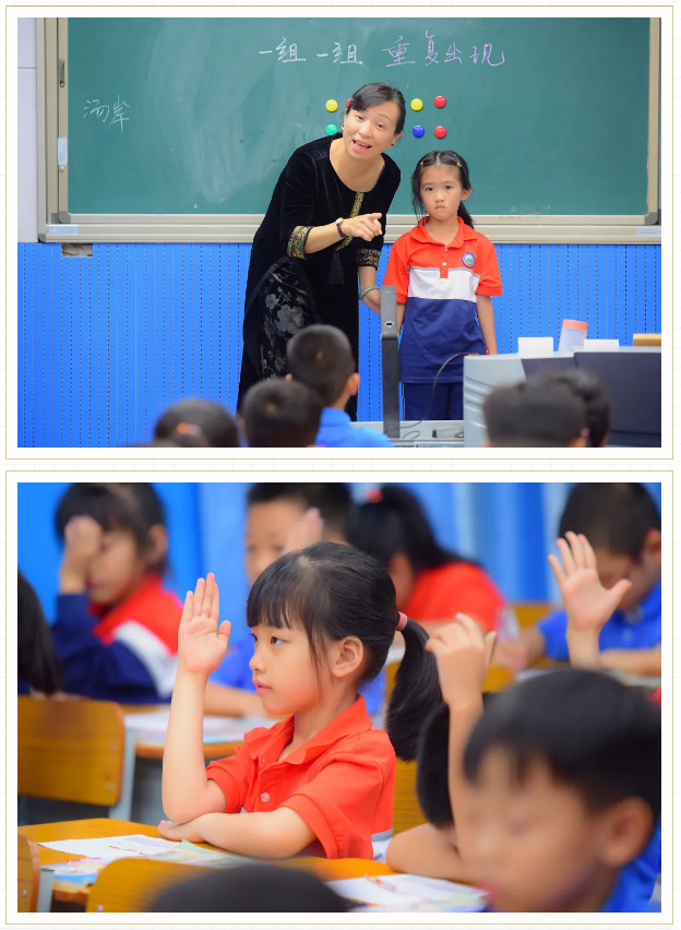 接着,海沧区霞阳小学的谢淑贤老师执教了《找规律》。面对一年级的小朋友,谢老师以极具亲和力的教态,富有童趣精炼的课堂语言,引领孩子们在读一读、圈一圈、猜一猜、摆一摆、动一动、听一听等多元的学习活动中感悟了规律,积累了观察、猜想、归纳、演绎等数学基本活动经验。