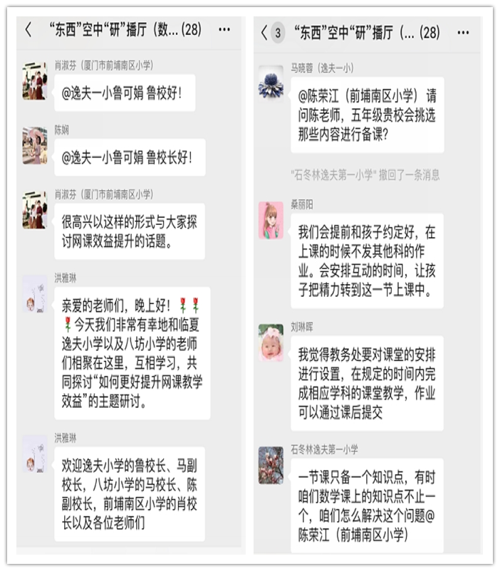 “停课不停研,成长不止步!”厦门市前埔南区小学联合临夏市逸夫第一小学、八坊小学启动“‘东西’空中‘研’播厅”,开展语文、数学、英语、体育、音乐、美术和心理等多学科多场次以“如何更好地提升网课教学效益”为主题的跨时空网络教研活动。