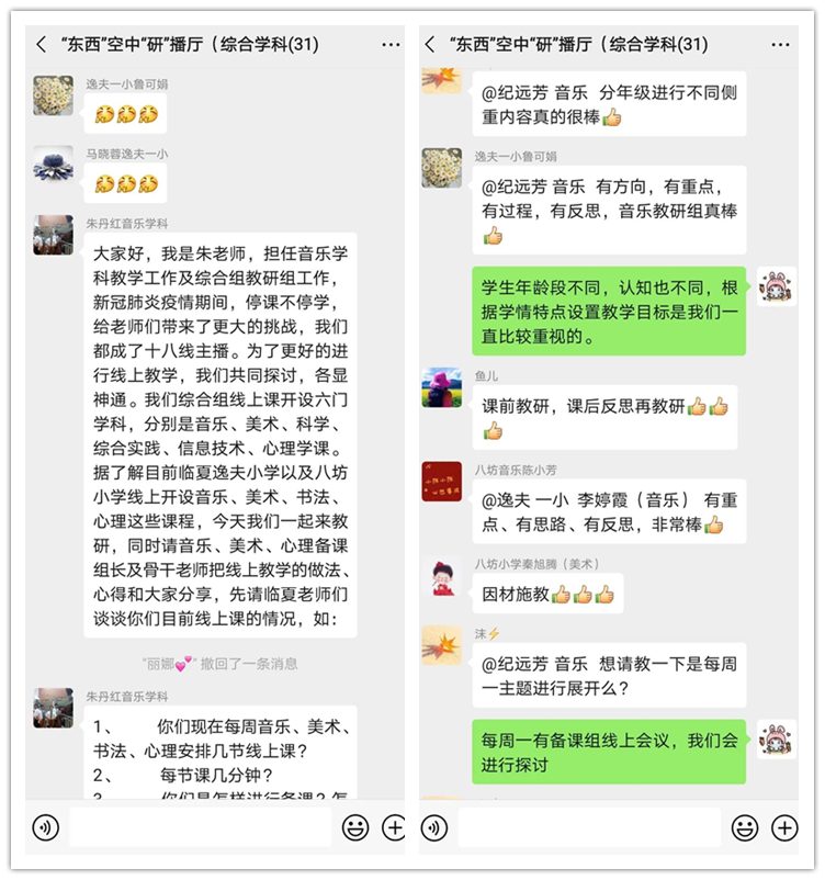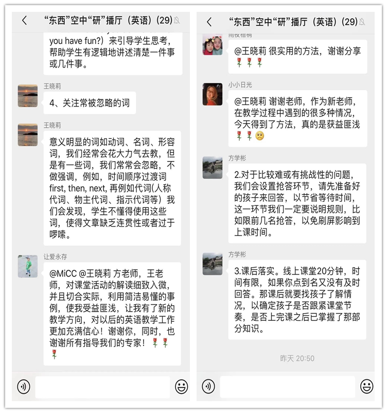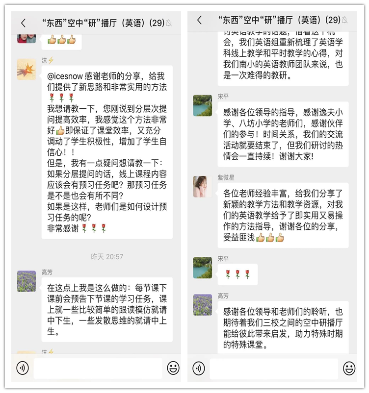 3月11日晚,在科研室陈娴老师和综合组组长朱丹红老师的主持下,“‘东西’空中‘研’播厅”再次热闹起来。