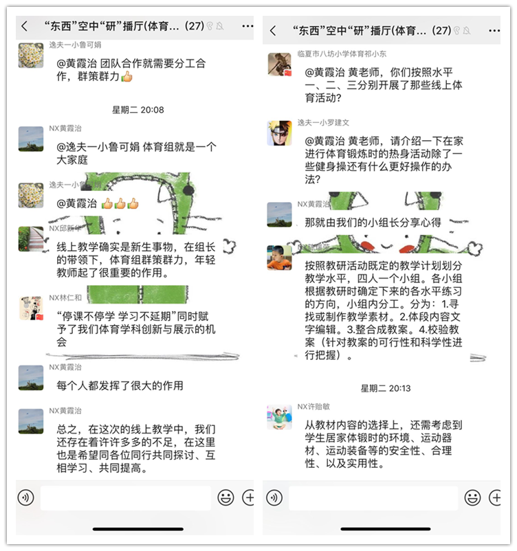 3月11日晚,在体育组教研组长黄霞治老师的主持下,“‘东西’空中‘研’播厅”再次欢腾起来。