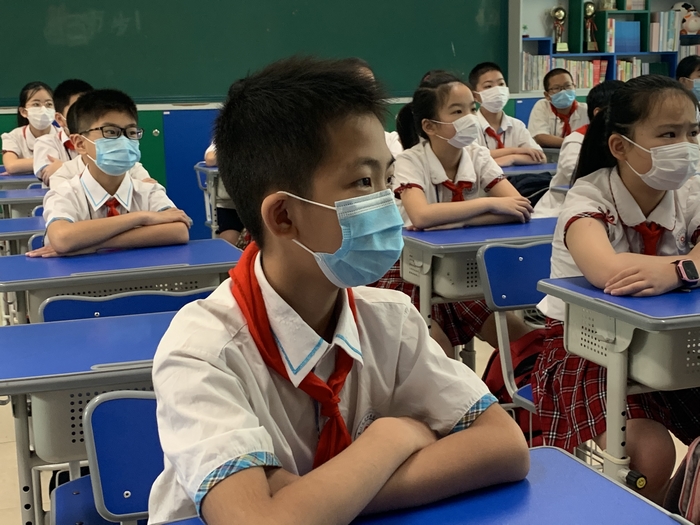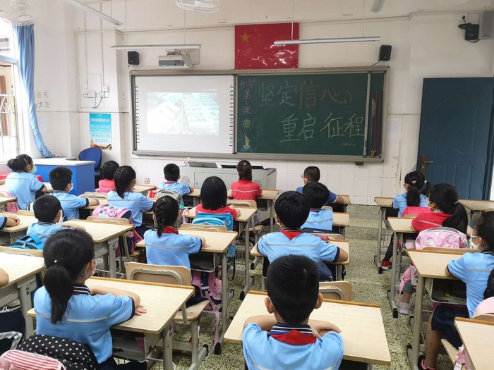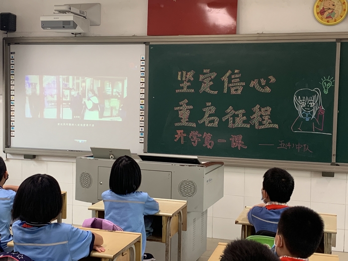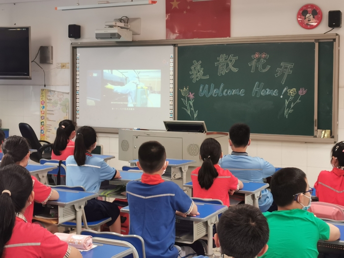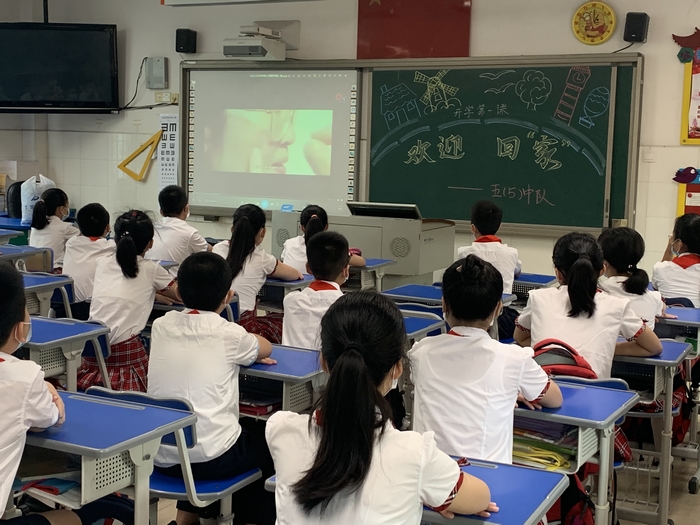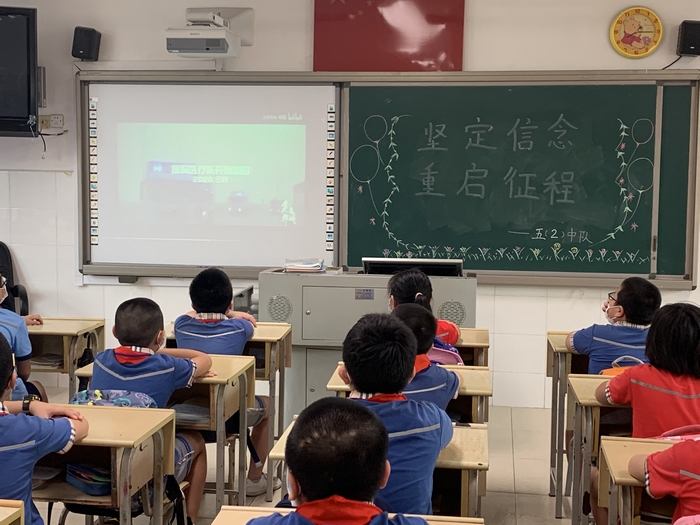 各班通过视频观看了学校精心录制的“开学第一课”——“坚定信心,重启征程”,回顾了特殊的疫情,在视频中找找你我他,走进抗疫战士背后的孩子们,聆听校长的建议,做好开学防护,汲取“防疫大课”的力量,更好地迎接复课。