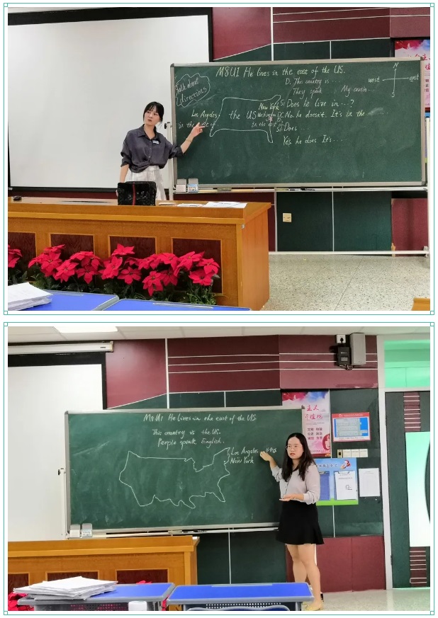 5月20日上午,英语教研组在古楼校区三楼电教室举行教师课程育人技能考核。考核课题为外研社一年级起点四年级下册Module 8 Unit 1 He lives in the east of the US.十五分钟课程育人技能比赛对于教师们来说,既面临着机遇,又面临着挑战!本次活动组织周密严谨,比赛时,参赛教师们认真准备,从教材处理、教学方法和技巧、板书板画在课堂教学中的运用等多方面展示自己的风采。