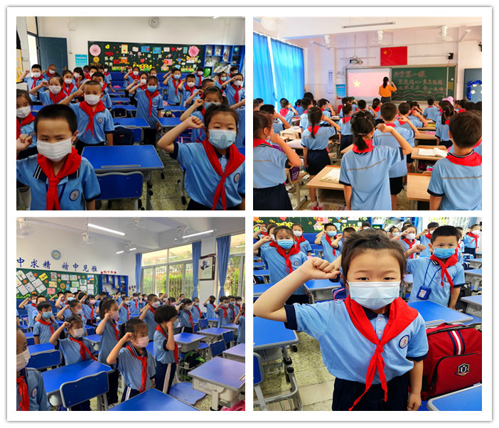 通过云端班会课的学习,孩子们掌握了少先队的知识。从云端到校园,孩子们时刻准备着。6月2日,是复学的日子。你瞧!孩子们测量体温时,秩序井然;观看《开学第一课》,专心致志。孩子们在用自己的行动,学习成为一名合格的少先队员。