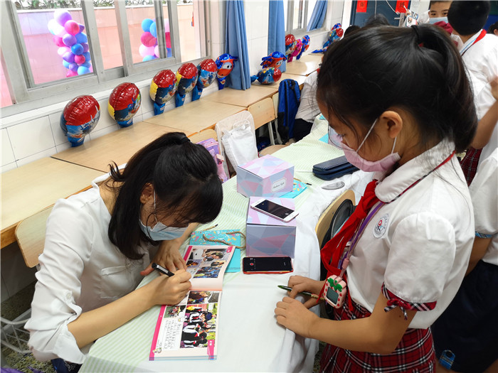 活动当天遇到肖校长、胡副校长,孩子们更是倾巢而出,求签名,求合照,那场面不亚于追星。